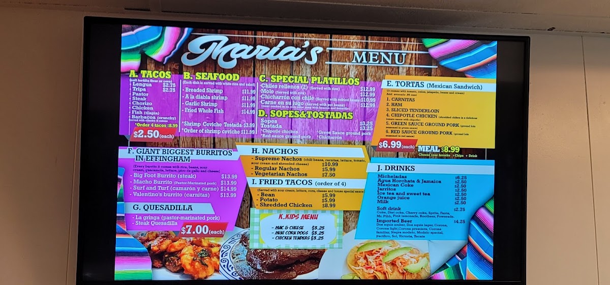 Welcome to Maria's Taco House, a vibrant Mexican restaurant nestled in the heart of Effingham, Illinois. Here, the menu is a joyous celebration of authentic flavors and hearty portions. Indulge in their mouthwatering tortas, such as the Torta Cubana, showcasing layers of chorizo, chicken, and a fried egg, or savor the delectable Playa Dinner entrees highlighted by the grilled shrimp paired with a creamy cheese dip.